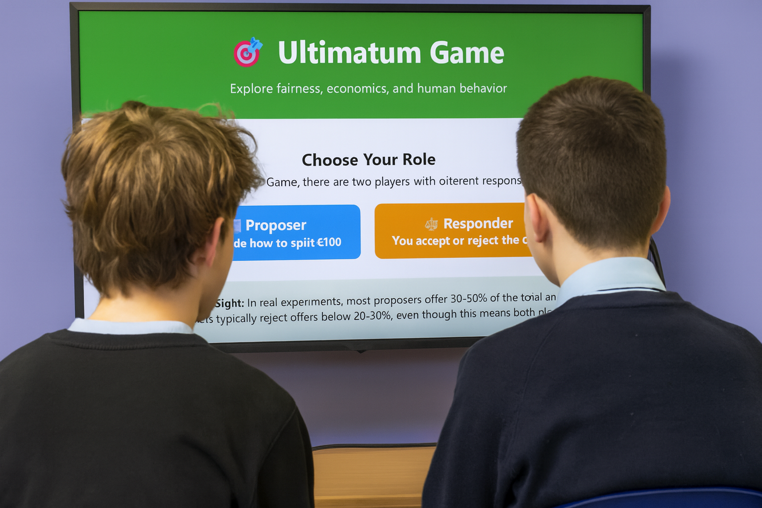 This simulator blends interactivity with behavioural economics research, allowing learners to experiment with offers, view AI responses based on empirical data, and understand the psychology of fairness and negotiation across cultures.